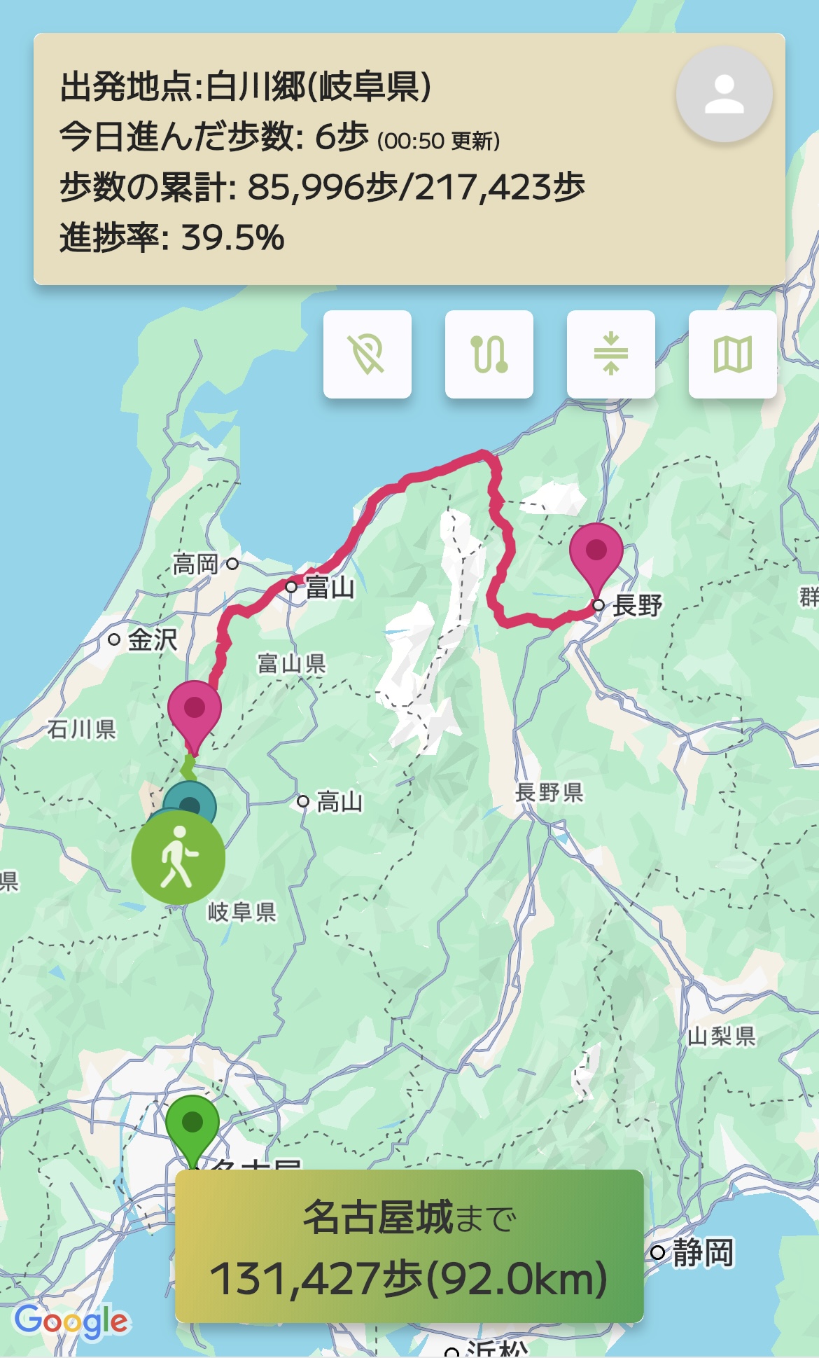 (富山県黒部市→岐阜県白川郷:109.1Km+岐阜県白川郷→現在地:59.1km)