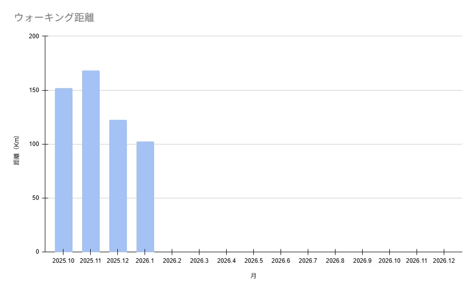 ↓月別ウォーキング距離グラフ